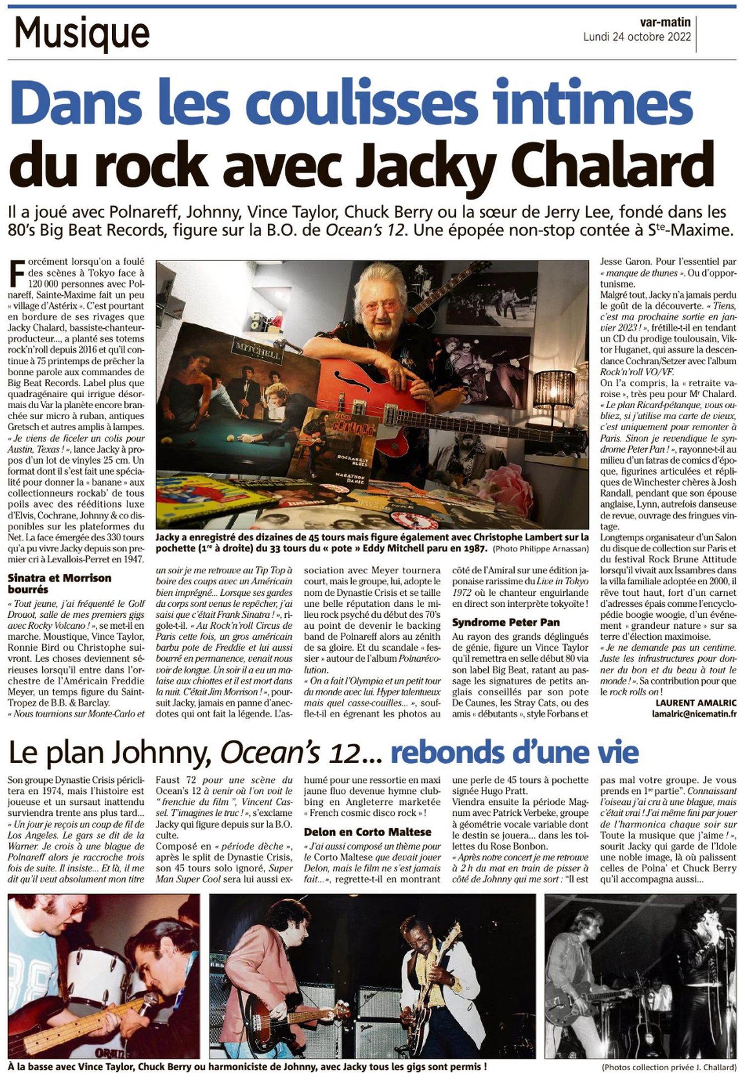 LE DISQUE SERA REALISE LUI AUSSI A DAVOUT AU STUDIO B CE SERA A CETTE OCCASION QUE JACKY CHALARD FERA CONNAISSANCE AVEC LE GUITARISTE PATRICK LOZAC’H ET LE PIANISTE JACKY GUERARD AVEC LESQUELS IL JOUERA PLUS TARD DANS DE NOMBREUSES SESSIONS.AFIN DE RESPECTER SCRUPULEUSEMENT LE SON ET L’ESPRIT ANNEES 50 DES SEANCES “DING DONG” DE SON VRAI NOM ALAIN POURQUIER AMATEUR EXPERT DE LA MUSIQUE DE CES ANNEES-LA SE JOINDRA A JACKY ET ASTRUC POUR LA REALISATION DE CET ALBUM QUI SURPRENDRA TOUT LE MONDE TANT L’ESPRIT DE LA PERIODE “SUN” DU KING Y EST PRESENTEE, JUSQU’A LA CONCEPTION DE LA POCHETTE ON S’Y CROIRAIT.DEVANT LE SUCCES CROISSANT DU LABEL, MICHEL BELLEMARI APPREND A JACKY CHALARD QUE MUSIDISC EUROPE UNE MUTINATIONALE DU DISQUE SPECIALISTE DE LA DISTRIBUTION DES DISQUES DANS LES SUPERS MARCHES SERAIT INTERESSEE A DISTRIBUER BIG BEAT RECORDS.JACKY S’EN VA TROUVER MICHEL BACHELET LE DIRECTEUR DE LA SOCIETE SFPP QUI LUI AVAIT DONNE UN COUP DE MAIN AU DEBUT DE L’AVENTURE POUR DISTRIBUER SES PRODUITS ET QUI ETAIT TOUJOURS RESTEE SON DISTRIBUTEUR.