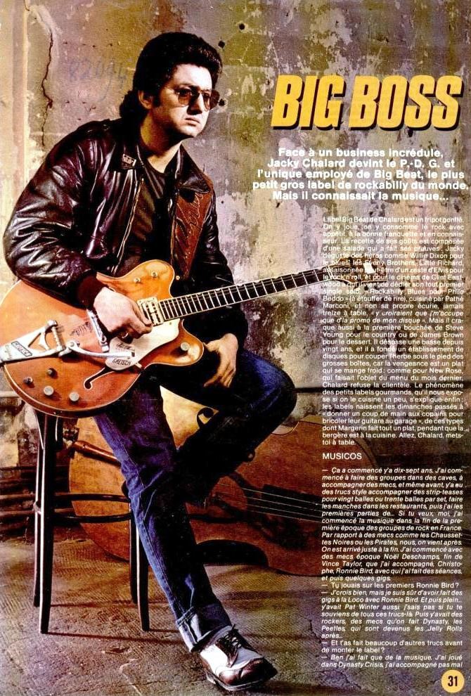 BIG BEAT A ETE CREE EN 1979 ALAIN MALLARET CREATEUR DE LA REVUE BIGBEAT MAGAZINE CONTACTE JACKY CHALARD EN LUI FAISANT PARVENIR LES MAQUETTES DE DEUX GROUPES DE ROCK N ROLL EN DEVENIR LES “JEZEBEL ROCK” QUI VIENNENT DE TOULOUSE ET LES ALLIGATORS QUI EUX VIENNENT DE CAEN AFIN QUE CE DERNIER PUISSE LEUR TROUVER UNE PERSONNE OU UNE MAISON DE DISQUE SUCEPTIBLE DE LES PRODUIRE.A CETTE EPOQUE JACKY TRAVAILLE A PARIS AUX STUDIOS DAVOUT.