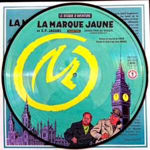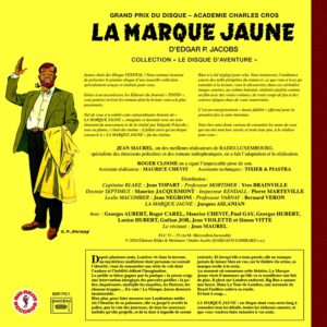Nul d’entre vous n’a oublié cette extraordinaire histoire de LA MARQUE JAUNE, imaginée et dessinée avec un sens étonnant du mouvement et de la réalité par Edgar P. Jacobs ; sous sa plume, c’était du cinéma : il fallait ainsi qu’un disque consacré à LA MARQUE JAUNE fût du cinéma.